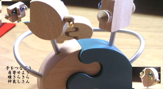 ------ トップベージへロボットのカップル 仲良しの木製ロボット 二体が腕を組んでいる姿のロボットです。